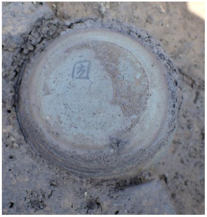 下の写真は須恵器の坏が5枚重なって出土したもので、下2枚の坏には墨で字が書かれていました。墨書土器と言いますが、南大原遺跡では初めての出土となります。