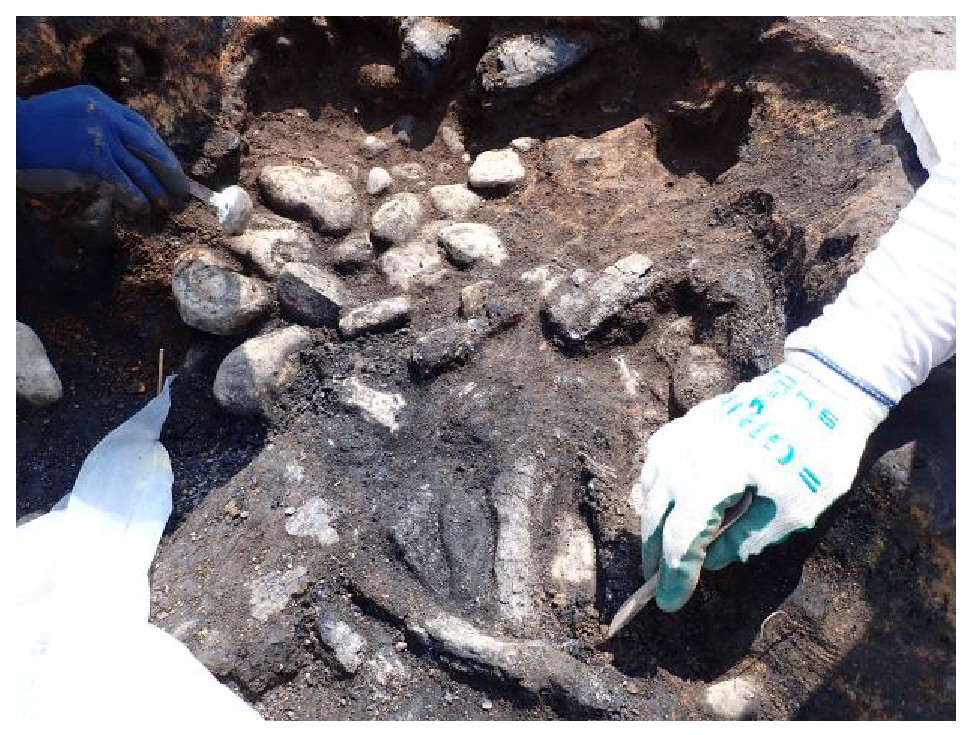 安塚古墳群の火葬遺構は遺物の残りが良く、出土遺物から穴のなかで遺体を火葬した方法がわかりました。