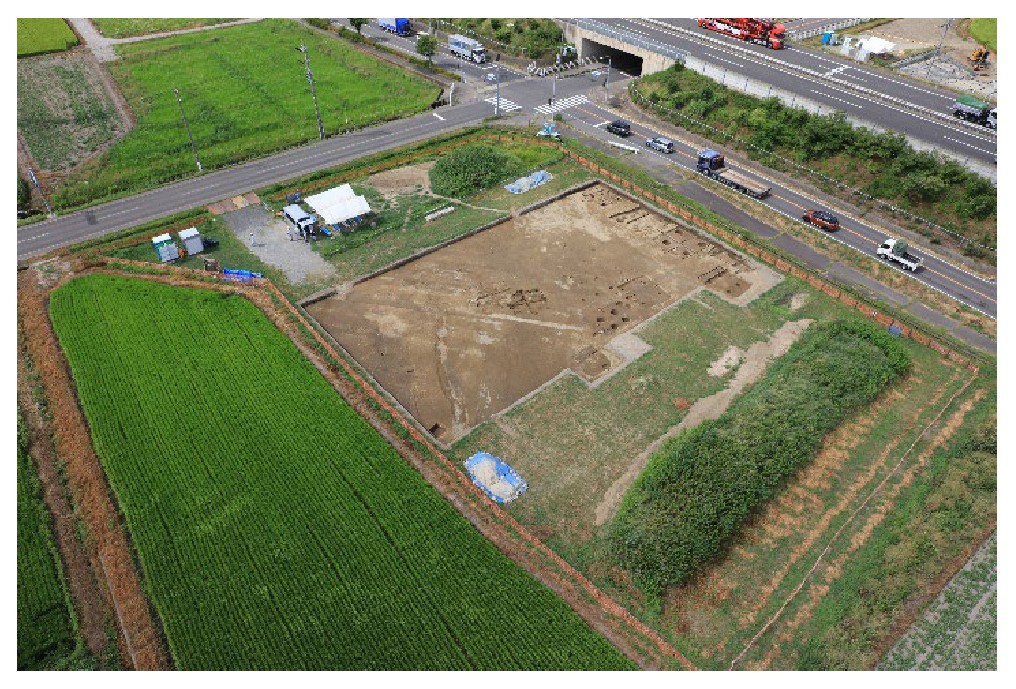 これまでの調査で竪穴建物数は調査範囲の南側で減少する傾向があり、調査範囲付近が集落の南端であることが判明しました。調査区の南側には鎖川が流れており水害の影響を受けやすい場所であたため、洪水を避けた場所にムラを形成したのではないかと考えられます。また今年度は、今までより西側の和田地区側に調査範囲を広げた所、竪穴建物跡が数多く確認されており、集落がさらに西方へ広がることがわかりました。