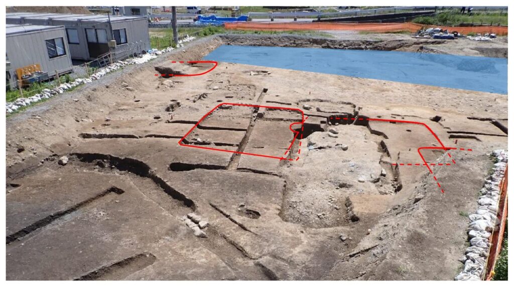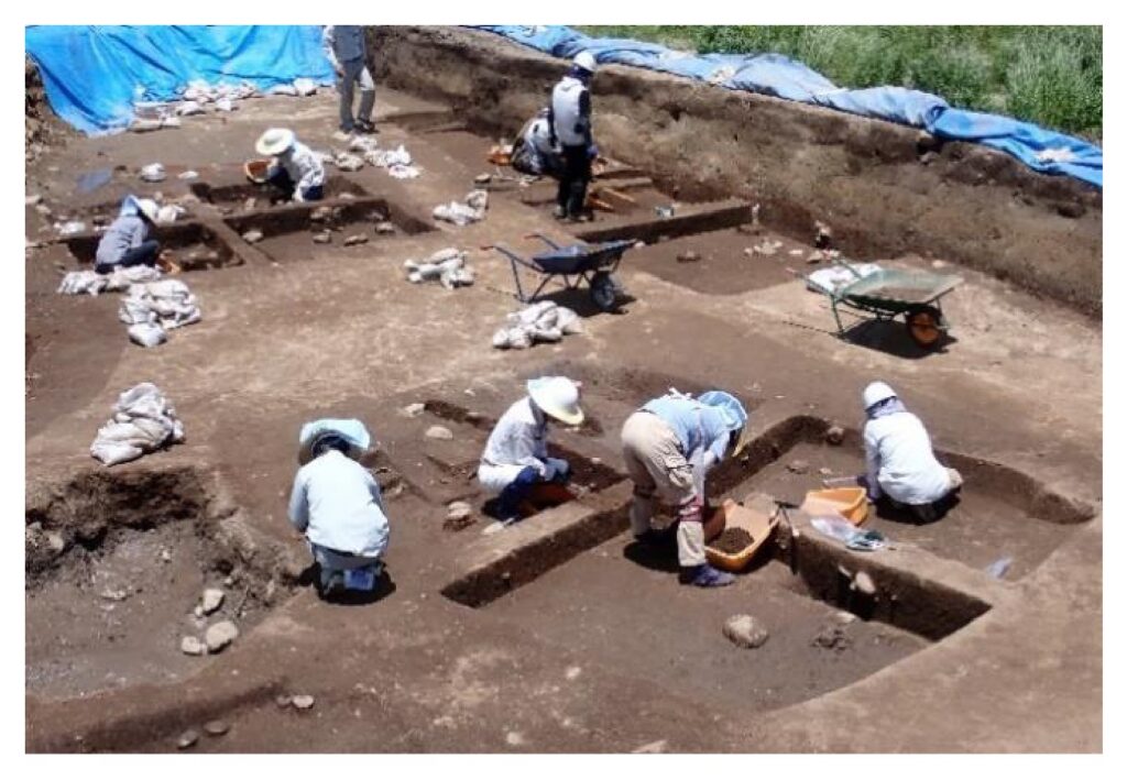 6月から開始し、現在平安時代の竪穴建物跡を約10軒を調査中です。カマド跡の残存状況がよい建物跡や完形の土器が出土した建物跡がみつかっています。