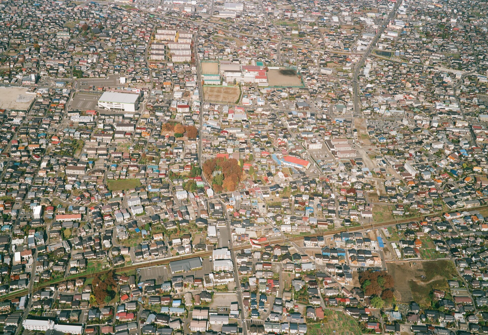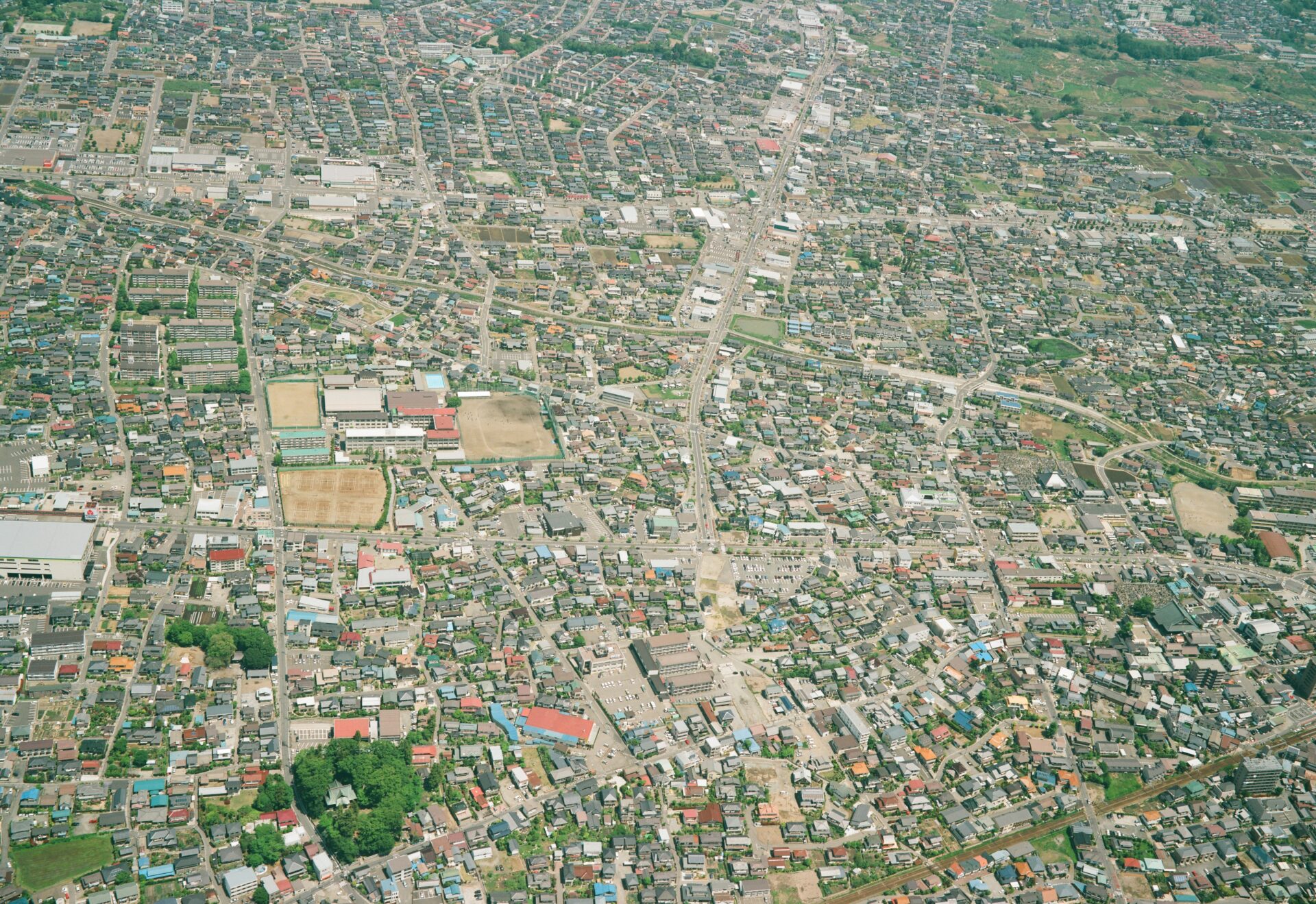 2011年撮影の浅川扇状地遺跡群調査範囲附近(長野市桐原地区)の航空写真です。撮影者から公開の許可を頂きました。県道高田線建設前の様子がよくわかります。