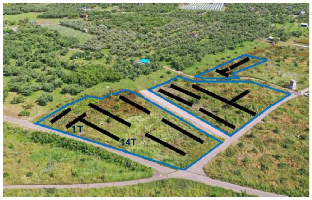 北大原地区トレンチ配置図(北西から)