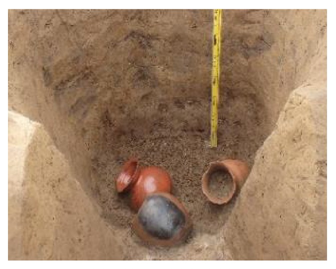 ・弥生時代中期の墓から小形壺と鉢が出土。