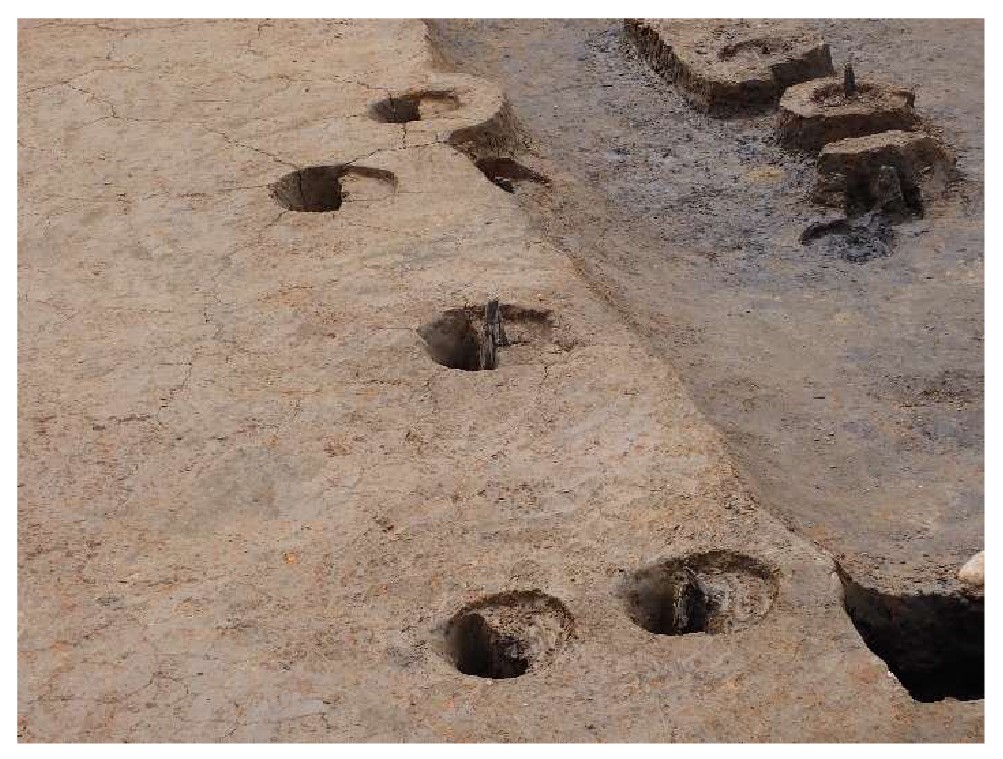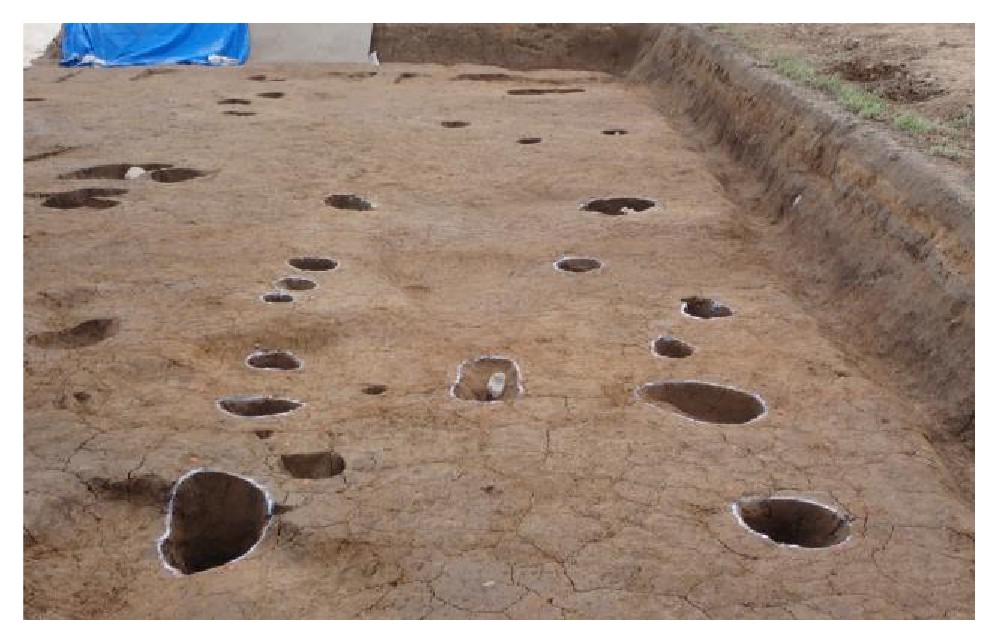 一見まとまりなく見えるこれらの穴も、穴の大きさや、穴と穴との間隔などを分析することによって、当時の建物の柱の位置や、上部の構造を推定することができます。