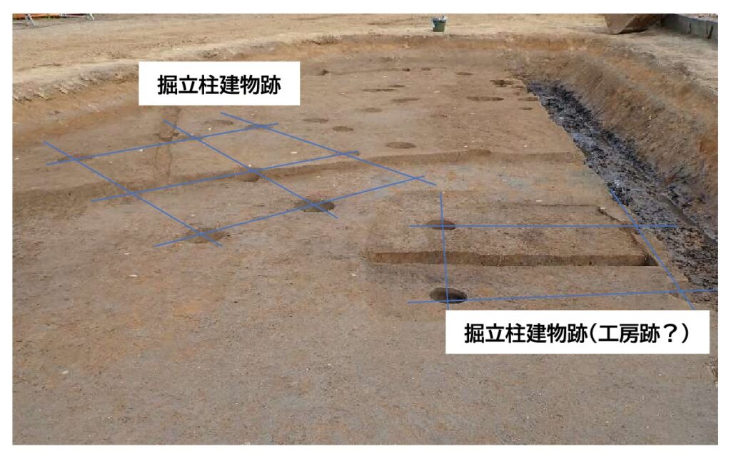 T12調査区では、東西3間×南北2間の建物や、東西2間×南北2間の建物と想定される痕跡がみつかっています。