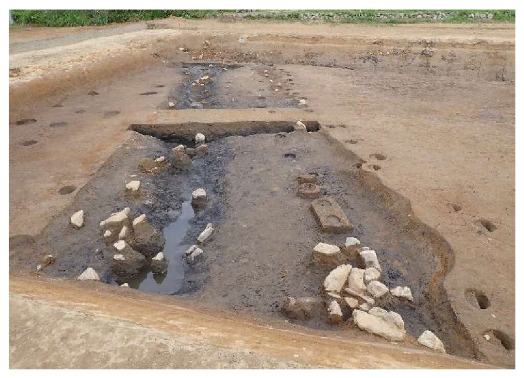 T12調査区の西側に隣接する旧川田保育園(現:認定こども園川田)建設時の調査では、川田氏館跡との関連が想定される建物の跡や、たくさんの穴がみつかっています。