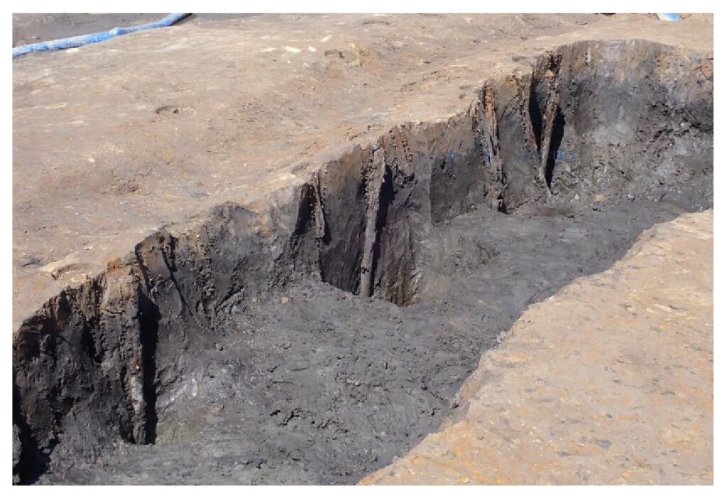 現在、T12調査区は1次面(中世面)の調査を終え、さらに下の面の調査を行っています。遺構数も増加し調査は佳境を迎えています。