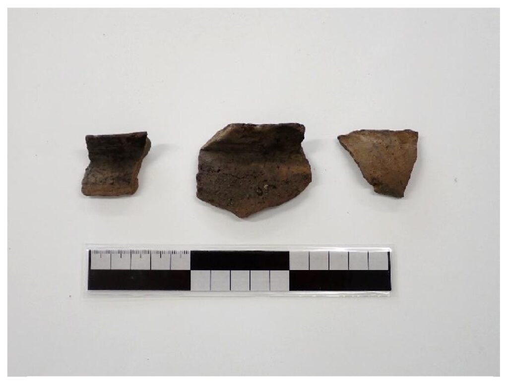 T12調査区からは、中世と想定される尾張(愛知県西部)周辺の窯で焼かれた山茶碗や、美濃中津川(岐阜県中津川市)周辺の窯で焼かれた陶器の甕がみつかりました。